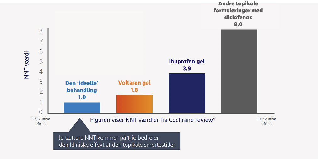 Voltaren gel har den laveste NNT* blandt topikale NSAIDs**4