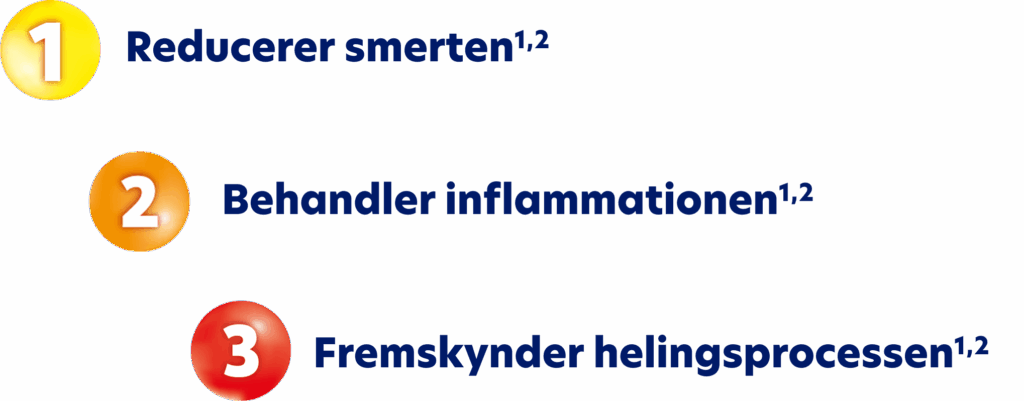 - Lindrer smerten direkte på det smertende område, og behandler inflammationen, der ofte er årsag til smerten.